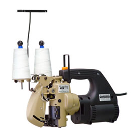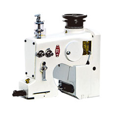 Simply operating handle can move up and down the sewing head. Provision of casters allows the machine to be moved easily. The low position of the carrier table allows easy loading and un-loading of bags. The carrier table is equipped with anti-derailing device and automatic return device.